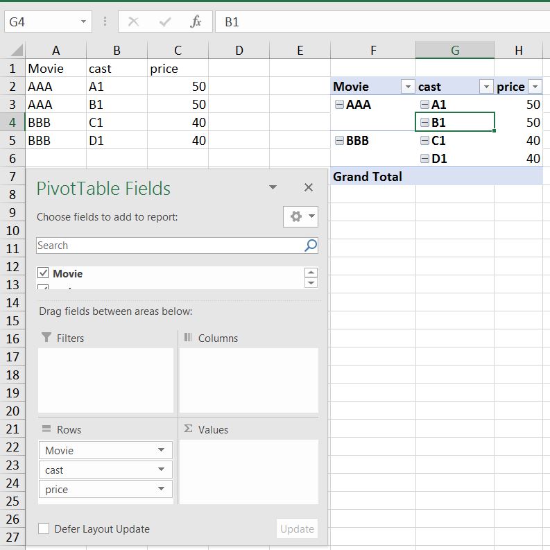 Or change the position of column in Pivot table, then you may get like this.