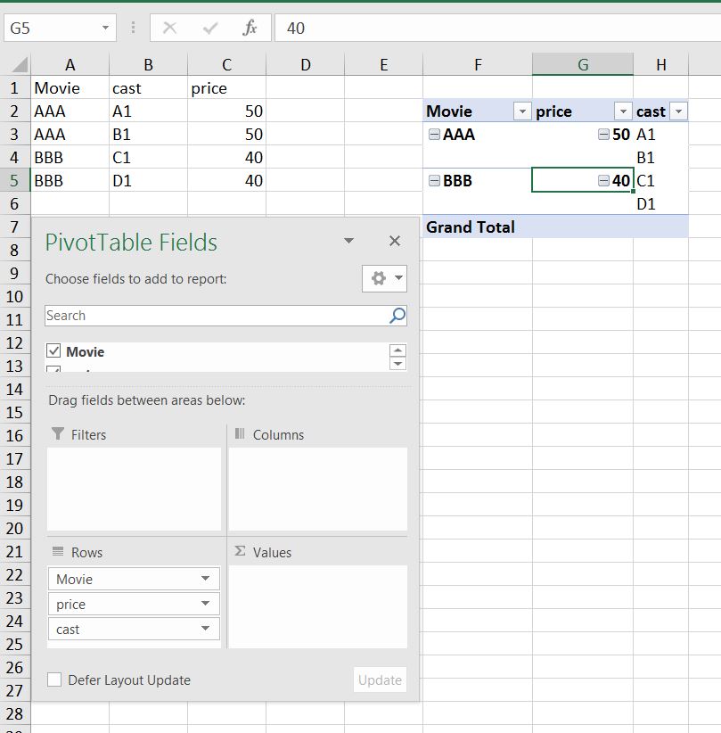 I can do this easily with Report in Access, but I need to do this in Excel if I could. And merge cells manually is out of the question. Thanks.