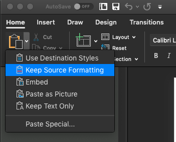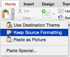 - Scroll down to Paste and Keep Source Formatting and select it.
