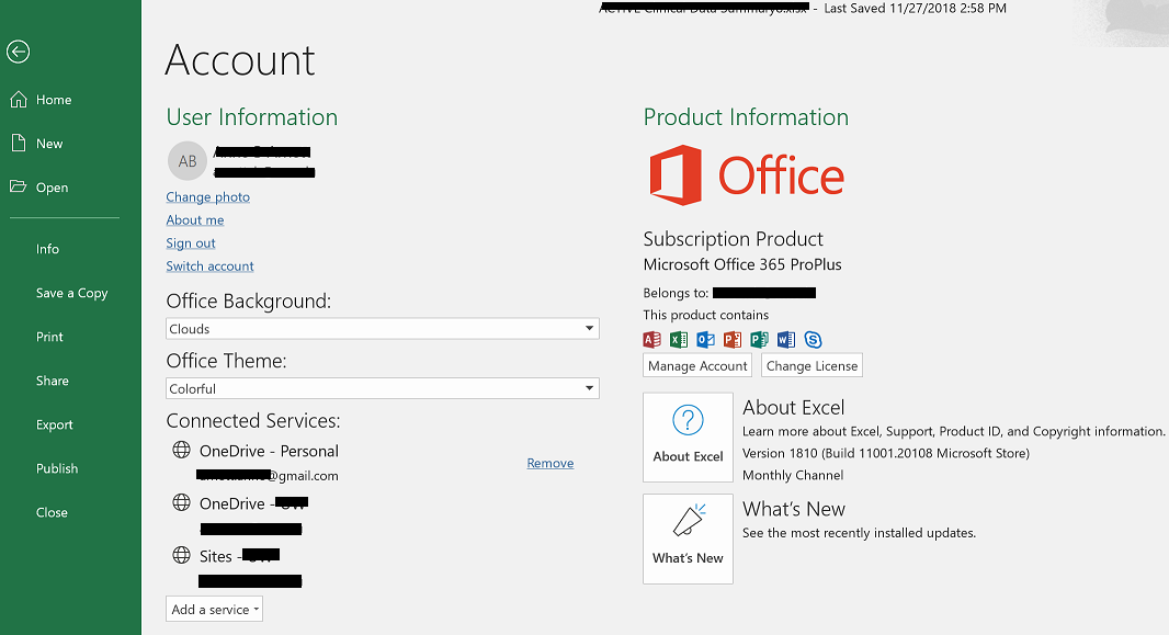 - Please provide the screenshot of Office 365 Product Information. To get this screenshot, open any working Office app such as Excel or Word, click File>Account, capture the screenshot of all the information mentioned under Product Information.