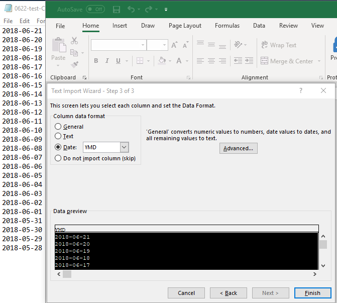 Then when you open the CSV file with date information, you will see a Text import Wizard to let your choose the date format.