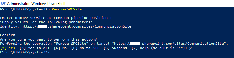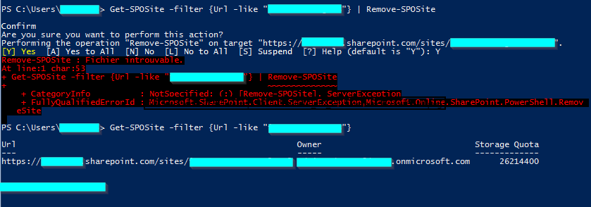 - If there’s another owner of the site, please check with him/her if they can delete the site from browser or using PowerShell command.