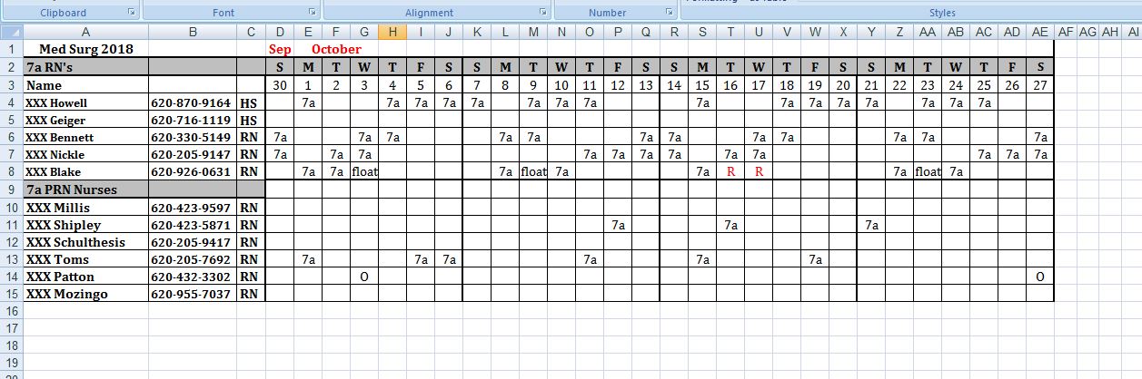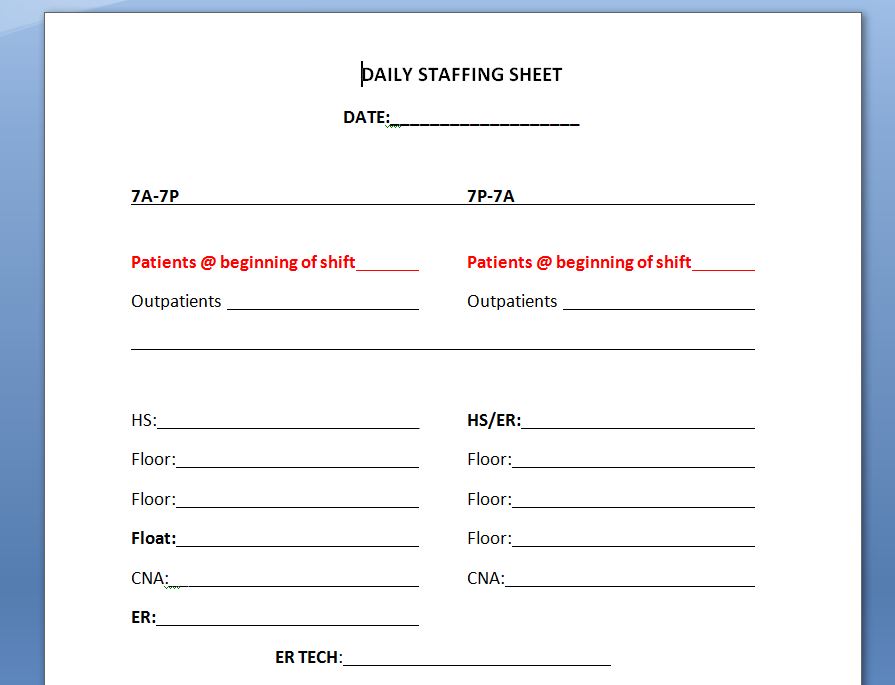 I have a monthly schedule (Example A) for our nursing staff created in excel. I make a daily staffing sheet (Example B) in word for each day of the month with the staff members on it. I would like to create a way for the staff I enter in excel to autofill into my work document. Any ideas?