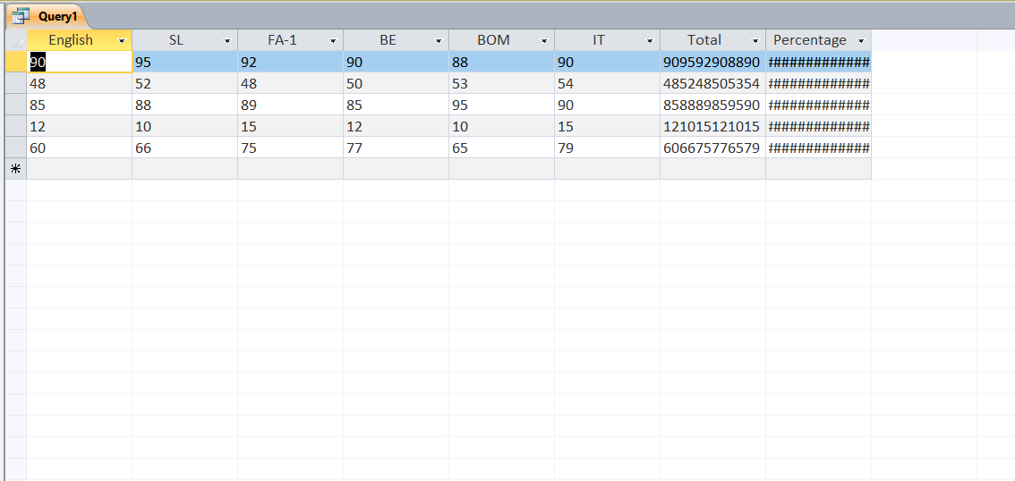 So Ken's StudentSubjects table would be a proper design. You can then total the grades for each student with a group By query: