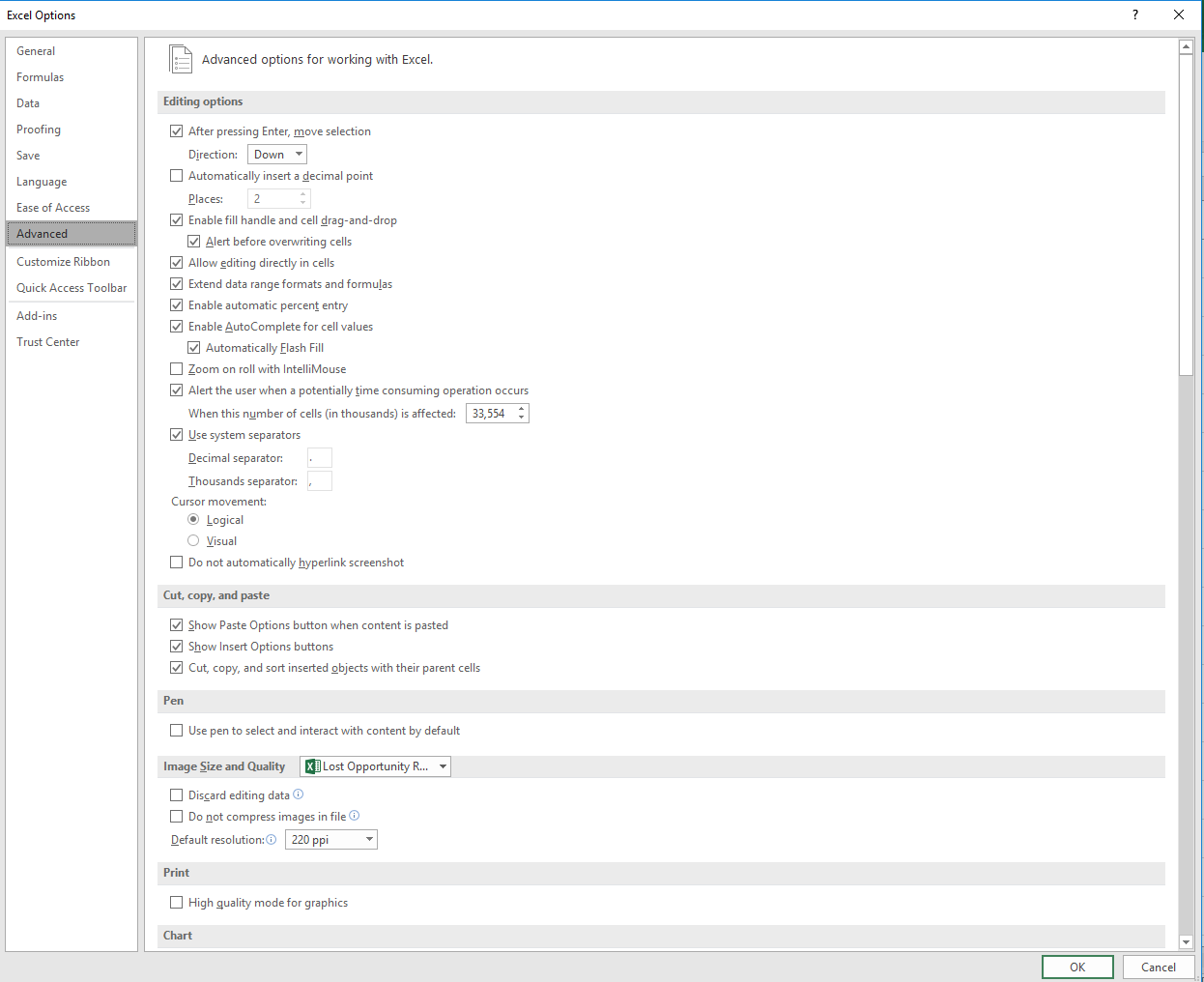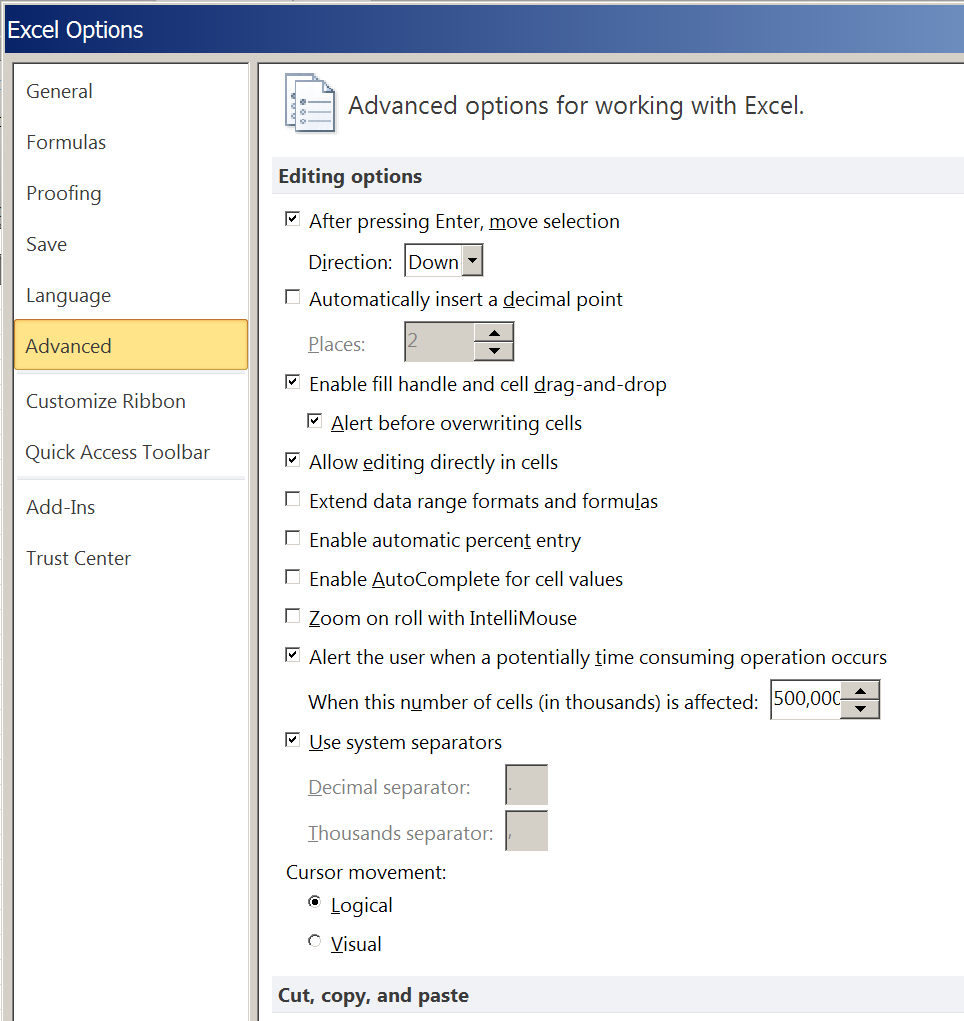 "Enable fill handle and cell drag and drop" should be checkmarked.