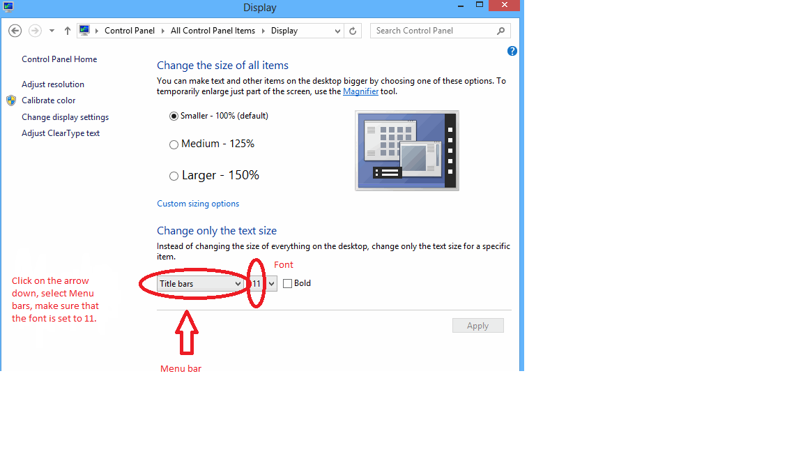 I want to isolate the issue for us to pinpoint the exact concern. Is this issue specific to Excel office app only? Have tried opening other office apps and check if the same problem occurs? Kindly check this article: Customize the ribbon in Office to gather more information about personalizing the ribbon in Office apps. Please take note that it's possible that the settings of your PC's display resolution might have been changed because it’s indicated in the article that it’s not possible to change the size of your ribbon, or the size of the text or the icons on the ribbon. To change the font of the menu bar you can follow the screenshot below for a step by step instructions on how to do the process.