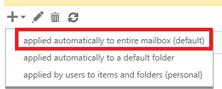 - Applied automatically to entire mailbox (default) Select this option to create a default policy tag (DPT).