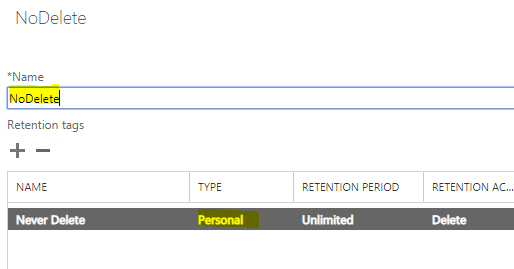 - “If you add a new Retention Tag, you cannot select it to be the default”.
