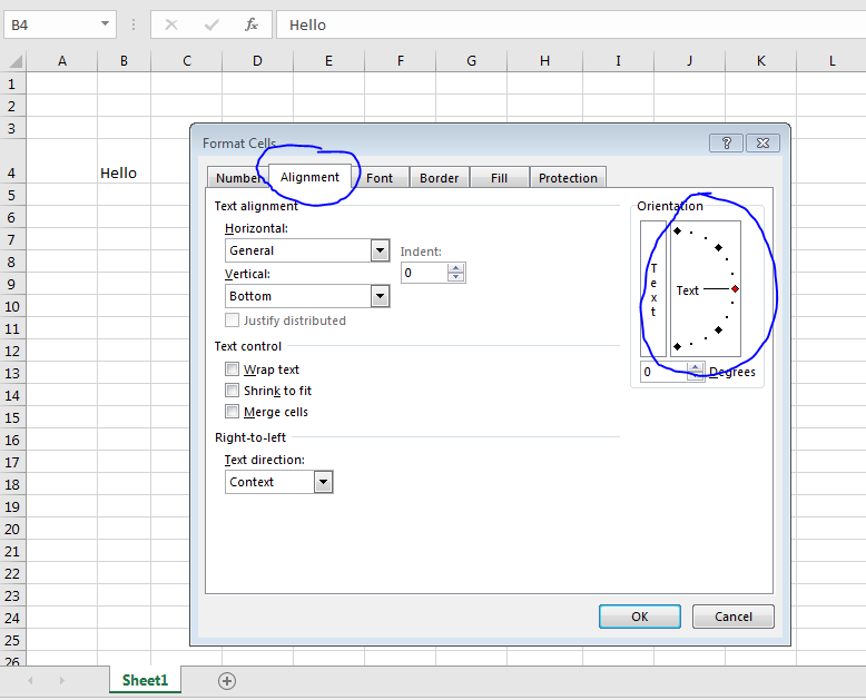 - Under the 'Alignment' Tab, you would see the encircled 'Text' with a line