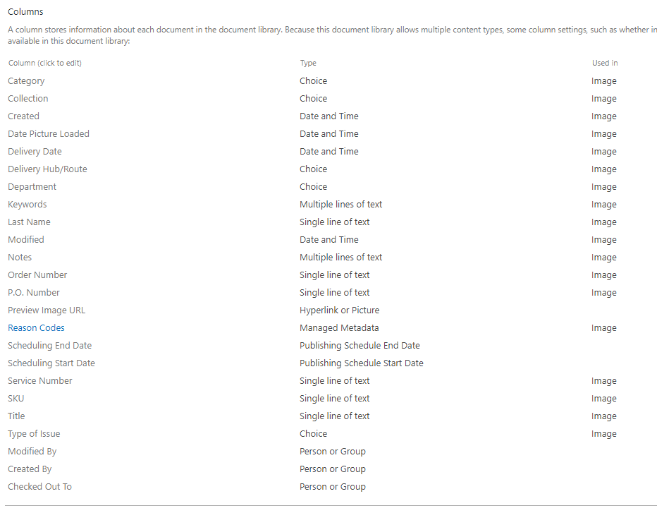 1.A full screenshot about columns you set in the document library.