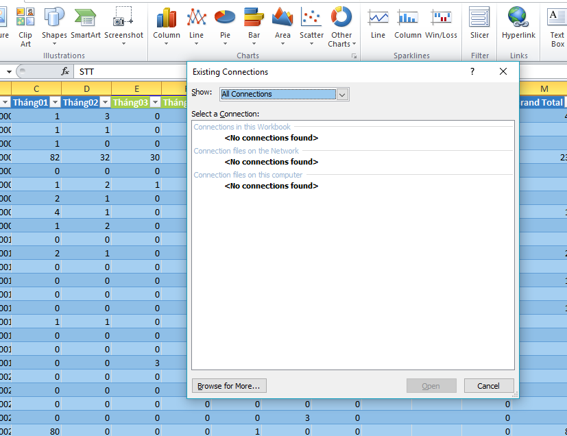 I have data and already convert it to table. I want to slice it, but when I choose the "Slicer" button, only a gray table appears, notifying that there are no connections on my worksheet or computer.