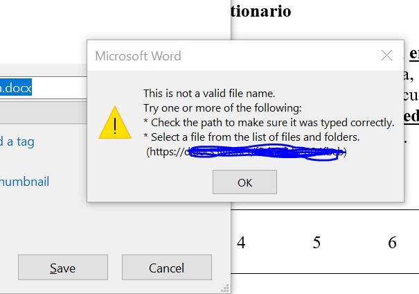 When I am in a Word Document (which I use in my laptop's OneDrive folder system), and try to "Save As", I frequently get the following error message: