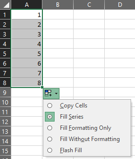 In addition, when you do the autofill, it is set default to fill series, here is an article for your reference: Fill data automatically in worksheet cells.