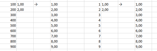 You can add a list from 1~9 or 100~900, then you can drop down the bottom right corner and select Flash Fill to do the auto fill: