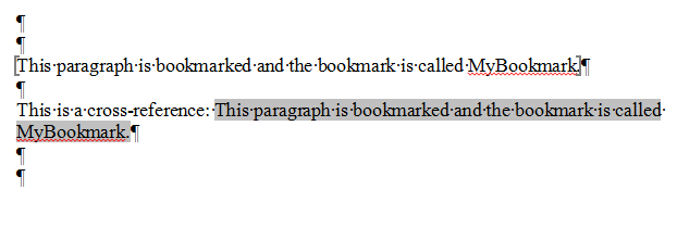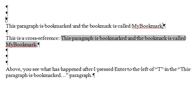 Obviously, if the paragraph in this example had been numbered and I had cleared the numbering from the added paragraph, any cross-reference to the bookmark number would show zero.