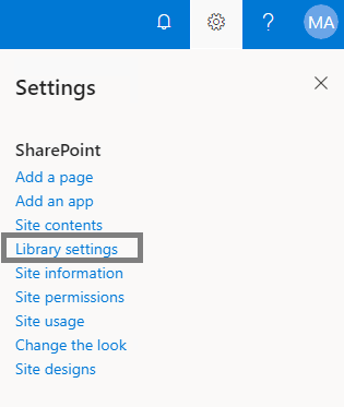 1.Create a new Document Library in your site. And open it, click on the Gear on the top-right corner > Library Settings.