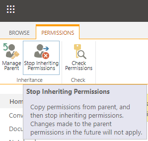 3.Click on Stop Inheriting Permissions button on the top left corner.