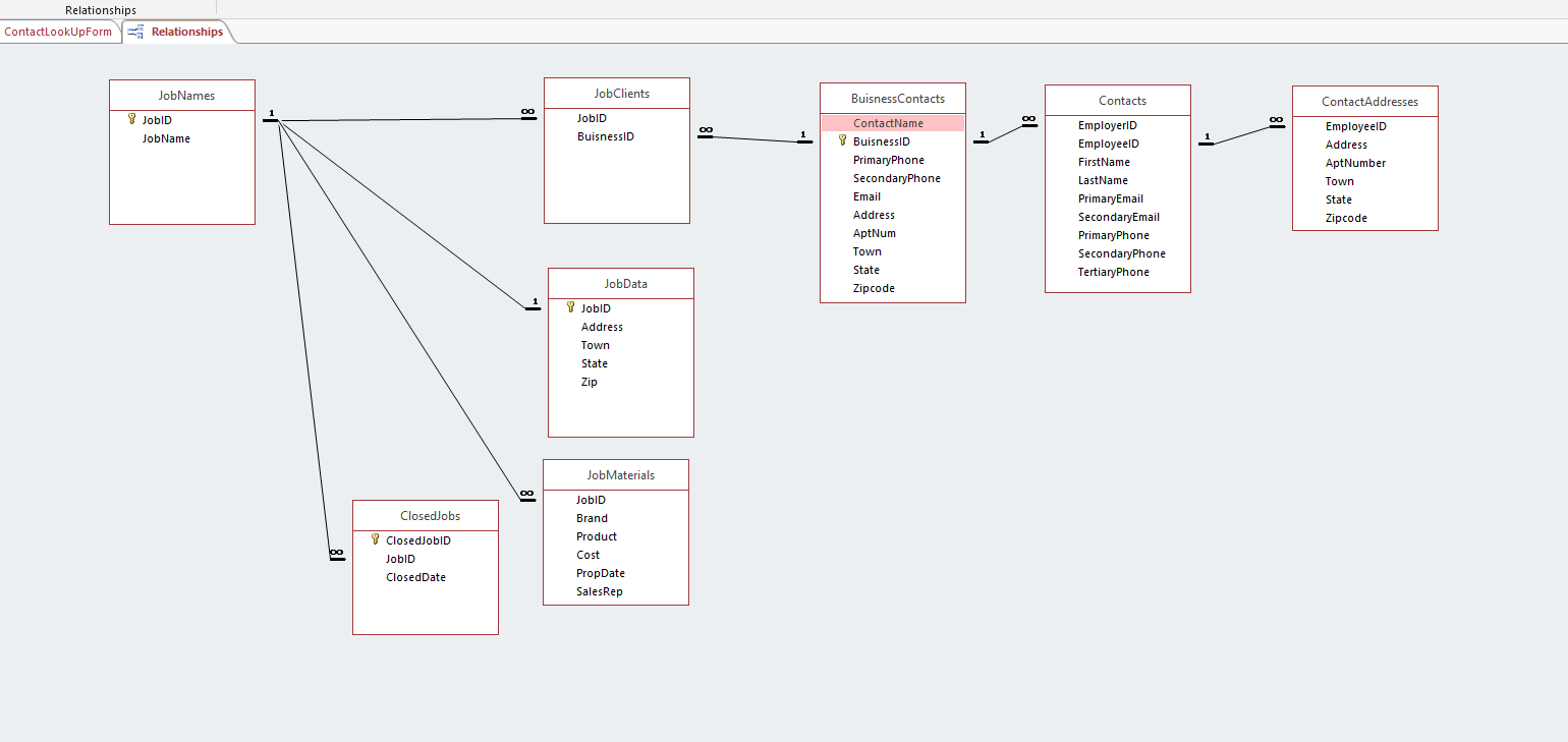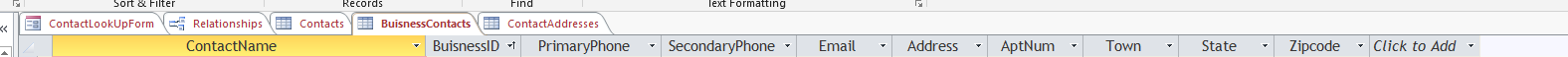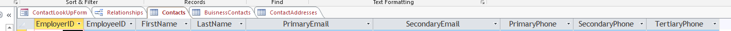 type, so the Contacts table would have a primary key ContactID say, which can be an autonumber for convenience. Other non-key columns in the table would represent attributes common to all contacts. In the BusininessContacts table the primary key ContactID