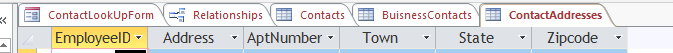 This table is 'all key', i.e. its primary key is a composite one made up of all three columns. The Phones table would be similarly structured. You can if you wish add an IsPrimary column of Boolean (Yes/No) data type to indicate which is the primary address