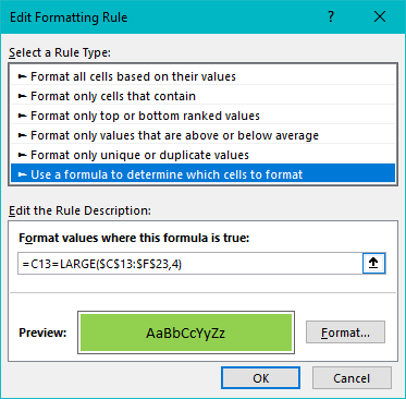 You want the largest1, largest2... per Row. So, from your last picture formula must be: