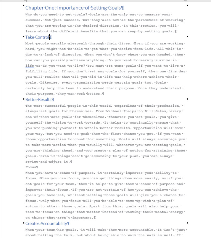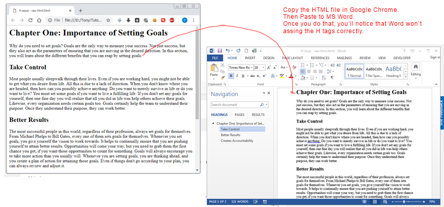 But it doesn't seem to fully recognize the H tags as "MS Word "headings"