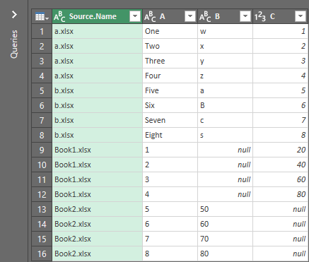 Based on your description, when we tested at our by combining the different Excel workbooks having the same columns names using Power Query, it combines the Excel workbooks without issue.