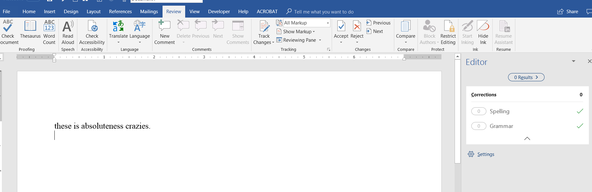 I type "these is absoluteness crazies." and it comes up with zero grammar errors and YES I have "Mark Grammar as you type".