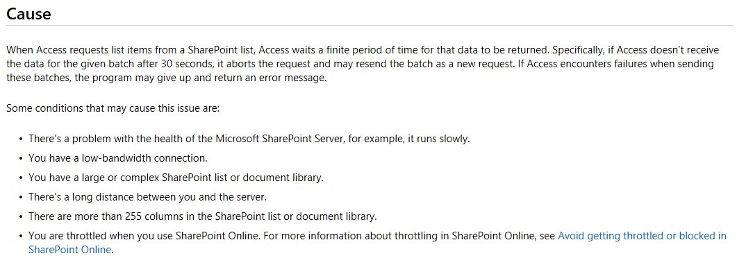 In the meantime, refer to Issues when you retrieve SharePoint list data in Access, there can be some cause of such issue.