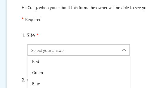 If you have created the drop down list on Microsoft Forms, could you please provide the detailed steps?