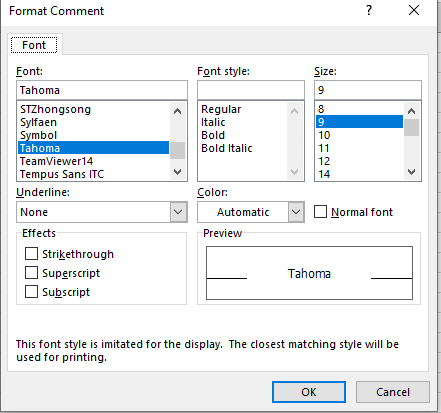 the selected text you wish to change the color of, and then right click to see the pop up menu to ' format comment' within the note. Then the option to change to 'color' allows you to choose a color from the drop down menu, right?