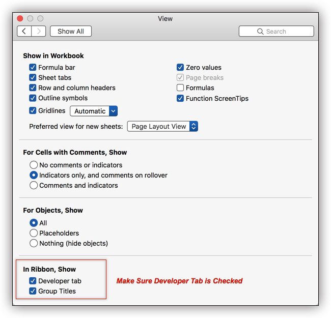 I need my students to have access to the developer feature as I teach them VBA in excel.