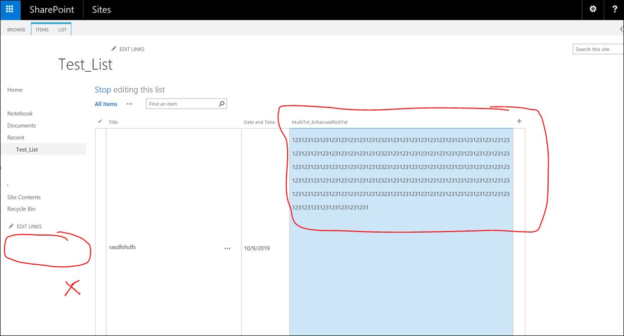 This is the screenshot of my test_list. I created a multi-text column with EnhancedRichText settings.