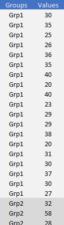 Your data are now grouped in columns, and each column will represent a new series in the B&W chart.