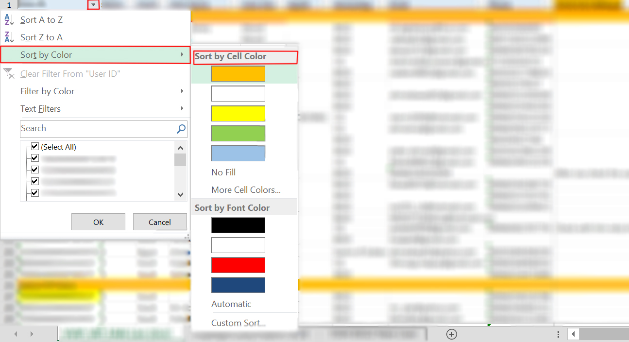 There are two types of a colour filter in excel sheets, one of those choices is the (Filter by Color) the other is (Sort by Color) and here is the problem, if I sorted by colour I can't disable that sort later or back to the original sheet sort! it seems like the sort of the sheet will be changed forever, is there any option to undo?