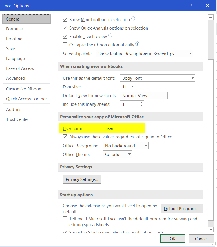 It is a leftover from the introduction of corporate networks and allowed primitive file sharing. Users are supposed to put their name, or network login in that place. That name is used in the "Lock file" generated when you open an Office file. If the file was saved the on the network and someone else tried to open it they would see the user name and know who to contact to get access to the file. BUT, most people do not set the name so it has a generic value, which makes it very annoying instead of useful.