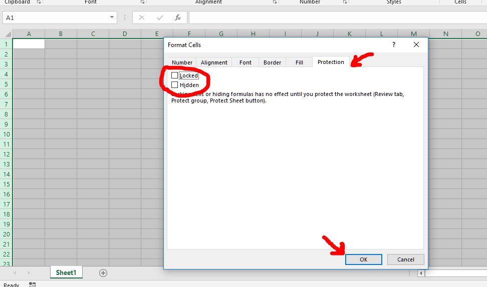 2-Go to Format cell > Protection and Unlock cells (uncheck)