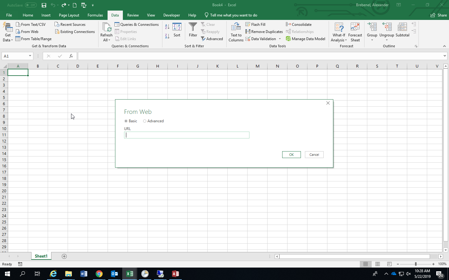 Previously, when you selected to create a web query, you would type the URL and then it would send you to the website. I would be able to log on into the website and then navigate through it and select data tables I needed with the use of yellow arrows. Then once I selected that I would just click import, and that would be that. If I wanted to refresh the data, I would just right click the data query, click Edit Query, the screen with the website would show up and ask me to log in, I log in, and then click refresh.