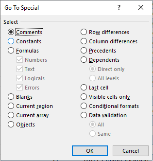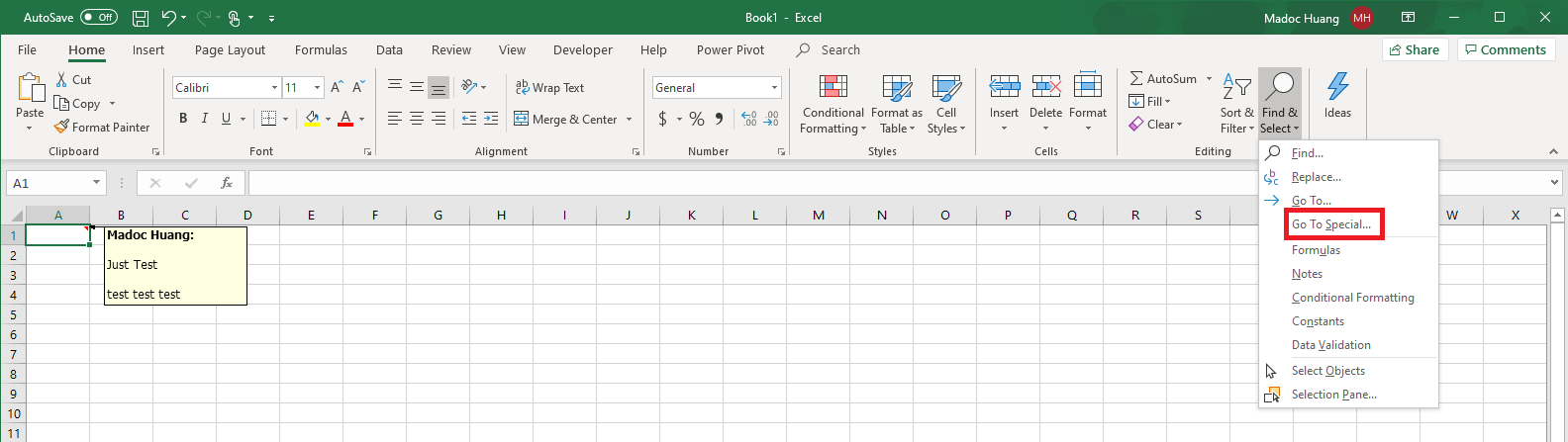 The version of Excel for Windows is Office 365 for Business 1902(11328.20420). Right-clicking on a cell, the “New Note” button still there. And you can also use the Go To Special feature under Find & Select.
