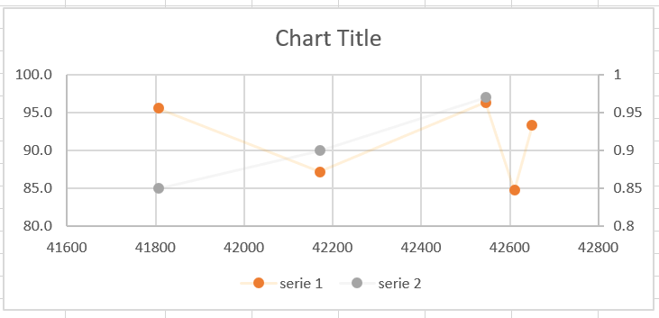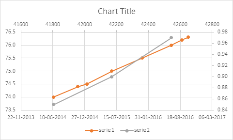 I have a problem in plotting (x-y scatter plot) series using 2 horizontal axis, one being a date ("date no") and the other one a calculated person age at that date. Series 1 is on the primary vertical axis while Series 2 is on the secondary vertical axis.