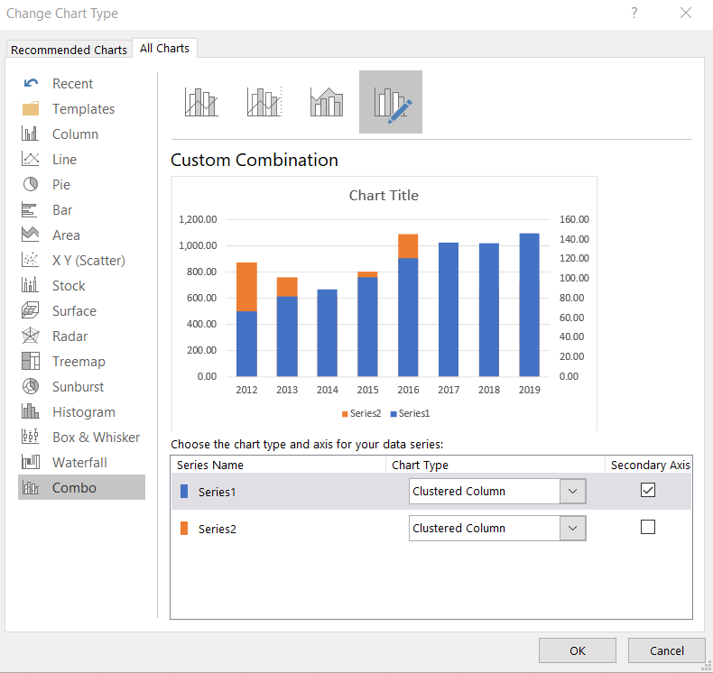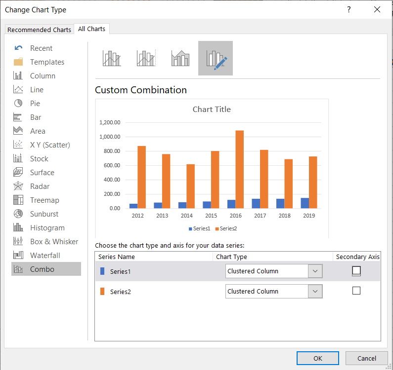 I am trying to make two columns of value show in a Column chart with two bars side-by-side. But whenever I try to move one series of data on secondary axis, the chart automatically overlaps the two bars. How can I fix this and how can I stop it from happening? This does not make any intuitive sense at all.