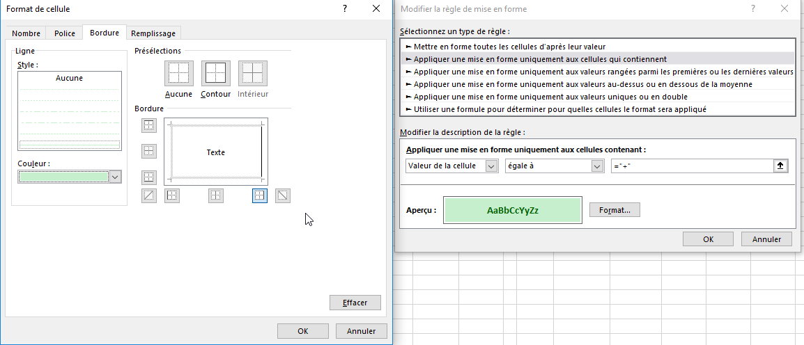 I was setting-up some conditional formatting on a spreadsheet in EXCEL 365. Everything works fine except for the border color: I can't change it from automatic to other colors. Whenever I change the color in the cell format dialog box, it keeps turning black (see below pictures)