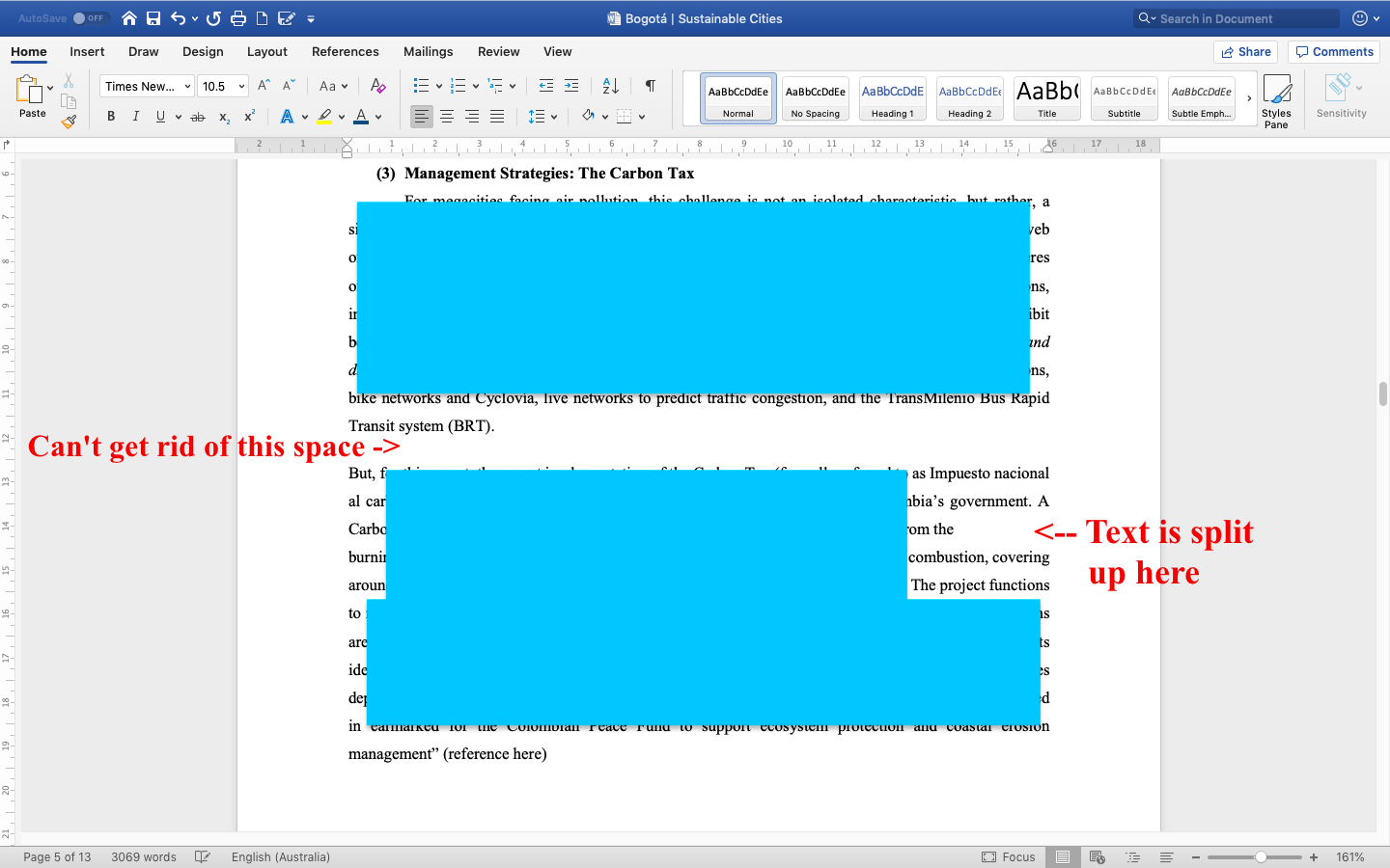 For the first query, we guess you had inserted the Continuous Section Breaks in your Word document. So, can you click on the Paragraph marks present in the Home tab to check whether there are Continuous Section breaks inserted in the Word document? If they are, please click on them and delete to get rid of the space.