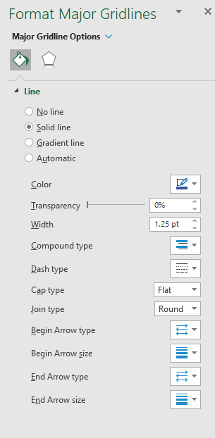 To adjust/format the Major Gridlines/Minor Gridlines: