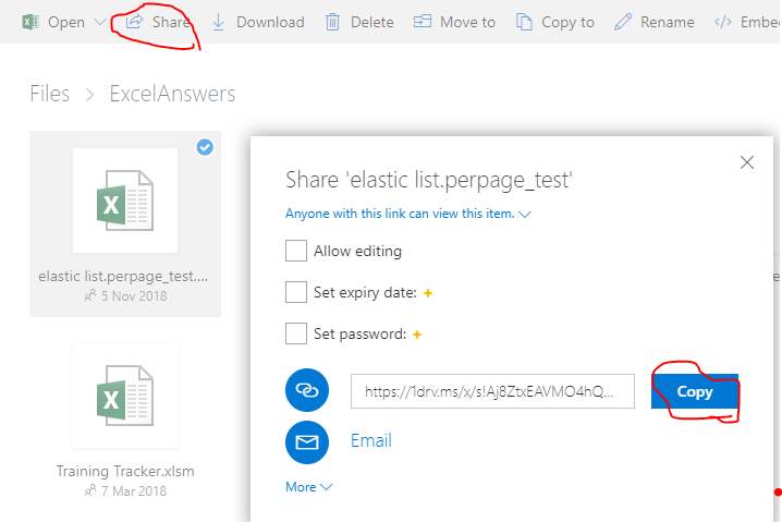 Click ''Copy' to copy the link. You have to have selected the file first so that it appears with a blue tick in the corner (which you can also see in the picture).
