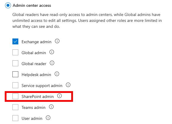 If so, I guess that you are not SharePoint admin, you aren’t assign a SharePoint admin roles as below: