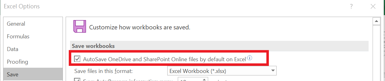 Open Excel>File>Options>Save, check whether the button ”AutoSave OneDrive and SharePoint Online files by default on Excel” is enabled.