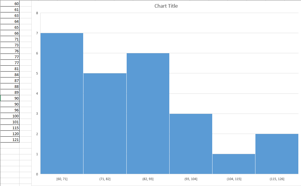 - and the bins in B2:B6 set as follows 70, 81, 92, 103, 114