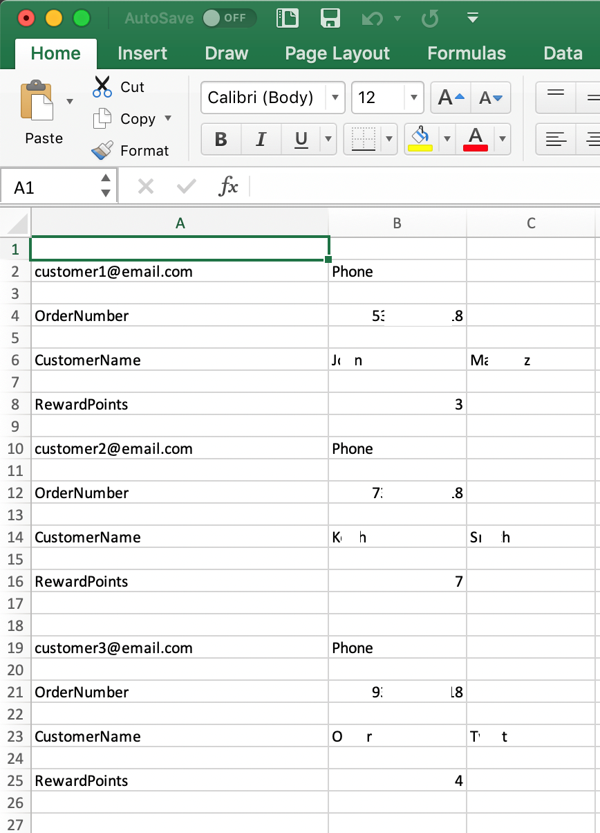 I could do this by hand manually for two data entries, but I would like to be able to automate this for a larger scale. I have a huge text file with numerous entries of customer orders, formatted like the text