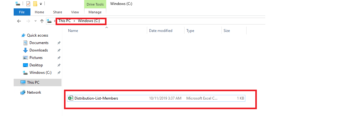 After running above PowerShell cmdlet, we can see that .CSV file on C: drive: