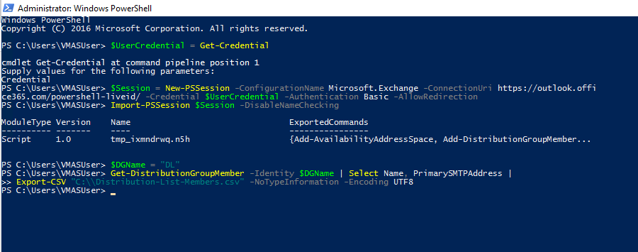 Export-CSV "C:\Distribution-List-Members1.csv" -NoTypeInformation -Encoding UTF8